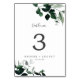 Diese smaragdgrüne Tischnummer ist perfekt für eine Hochzeit. Das elegante und dennoch rustikale Design besticht durch stimmungsvolle, dunkelgrüne Blätter und Eukalyptus mit einem modernen böhmischen Waldgefühl. Die Karte druckt auf der Vorder- und Rückseite (beidseitig). Die Artikel werden genau so gedruckt, wie sie auf dem Bildschirm erscheinen, wenn Sie sie zum Warenkorb hinzufügen, sodass Sie jede Tischnummer, die Sie benötigen, individuell anpassen und hinzufügen können.