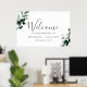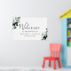 Dieses smaragdgrüne Hochzeitsplakat ist perfekt für eine Hochzeit. Das elegante und dennoch rustikale Design besticht durch stimmungsvolle, dunkelgrüne Blätter und Eukalyptus mit einem modernen böhmischen Waldgefühl. Passen Sie das Poster mit dem Namen der Braut und Bräutigam und dem Datum der Hochzeit an.