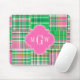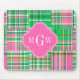 Emerald Hot Pink Preppy Patchwork Madras Monogram Mousepad