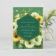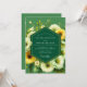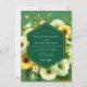 Embrace a sophisticated botanical aesthetic with this stunning floral design. A deep emerald green background provides a dramatic canvas for vibrant blossoms to pop. Luminous marigold yellow and creamy white ranunculus flowers are artfully arranged with delicate foliage, creating an elegant and modern mood.