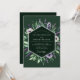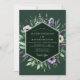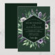 Embrace a moody and romantic atmosphere with this elegant design. A deep emerald green background sets the stage for a lush botanical arrangement. Sprigs of delicate purple lavender, pale anemones, and verdant green leaves create a beautiful wildflower-inspired display. This artwork is perfect for a sophisticated and natural union.