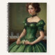 Un vestido verde con bordados de negro, una combinación exótica y elegante. La dama irradia misterio y sofisticación.