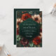 This opulent wedding design evokes a dramatic and moody atmosphere. A lush arrangement of burnt orange dahlias, blush anemones, and sage green succulents bursts from a deep emerald green background. The rich, jewel-toned palette creates a sophisticated and romantic feeling, perfect for an elegant autumn affair.