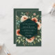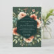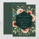 Experience a dramatic romance with this elegant design. Lush botanical arrangements of soft peach roses and blush anemones bloom against a deep emerald green background. The striking contrast creates a moody and sophisticated atmosphere for your special day. This composition is perfect for a refined and memorable union.