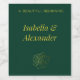 Featuring deep emerald tones, elegant golden typography, and delicate rose accents, these labels transform every bottle into a meaningful detail of your special day.