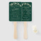 Diese HochzeitsHand-Fan-Programme sind rustikal, elegant und schön. Das handgemalte Aquarelldesign besticht durch einen Hauch von Salbei-grünen oder blassolivfarbenen Blätter und einen marmorfarbenen smaragdgrünen Hintergrund. Die Typografie zeigt eine laky Skriptkalligraphie, und es gibt Raum für Details über die Zeremonie, das Brautparty, und ein kurzes Dankeschön. Ideal für eine Hochzeit im Freien.