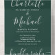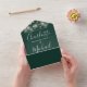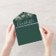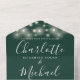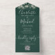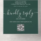 Alles in einer Hochzeitseinladung mit hübschen Saitenlichtern, prächtigen Stilnamen und schicken Typografien auf smaragdgrünem Hintergrund. Die Einladung enthält eine perforierte RSVP-Karte mit QR-Code. Entwickelt von Thisisnotme©