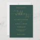 Diese elegante smaragdgrüne und goldene Hochzeitseinladung mit Herz-Script-Kalligraphie kann mit Ihren Informationen in chic Typografie personalisiert werden, mit Ihren Daten auf der Hochzeitswebsite und Ihrem QR-Code auf der Rückseite. Entwickelt von Thisisnotme©