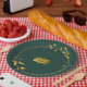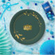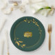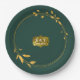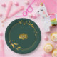Einfach goldfarbener Kranz und Imitate Gold Glitzer Abzeichen auf tiefem Smaragdgrün. Personalisieren Sie die Initialen und das Hochzeitdatum in Text auf dem Abzeichen. Design funktioniert für jedes Dusche, Jubiläum Party oder Hochzeitsveranstaltung in einem Smaragd und Gold Thema.