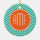 Emerald und Orange Chevrons Custom Triple Monogram Keramikornament