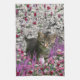 Emma in den Blumen I - kleines graues Kätzchen Küchentuch
