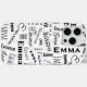 Dieser iPhone-Fall ist eindeutig "Emma's" mit ihrem mutigen Namen auf ihm angezeigt wird es gibt kein Versehen seiner Besitzer. Das Design ist ein verstreutes Muster eines benutzerdefinierten Vornamens in Schwarz und Weiß mit einem hellgrauen "E"-Skript im Hintergrund.