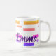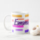 Emma / Fügen Sie Ihren Namen Kaffee Tee Tasse Cup zu Ihrer Trinkbehälter-Sammlung hinzufügen. Eine coole Geschenk-/Geschenkidee für alle, die individuelle Designelemente, positive Farbtöne, helle fröhliche Farben, Minimalismus, abstrakte Kunst usw. Liebe der Hintergrundfarbe (weiß), um Ihren Geschmack und Stil zu Anzug. Gelb, lila, rosa.