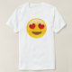 Lustiger Emoji Entwurf. Gelbes Gesicht mit roten Herzaugen. Addieren Sie Ihren eigenen Text. Ändern Sie die Hintergrundfarbe bis Ihr Lieblings.