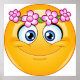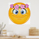 Ein gelbes Emotikon mit einem Blumenkranz um den Kopf. Dieses Design sieht wirklich effektiv aus auf diesem Poster
