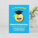 Laden Sie Ihre Freunde ein, es ist an der Zeit, sich frei zu machen und zu feiern! Feiern Sie mit dieser niedlichen Emoticon Abschluss Einladung mit einem gelben Hut mit einem Abschluss Hut und wilder Zunge aus dem Gesicht!