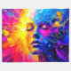 Dieses farbenprächtige Frauenportrait, das mit abstraktem Ausdruck überstrahlt, erinnert an Gefühle strahlender Ruhe und Tiefe (Dieses Design aus KI). Bestellen Sie noch heute und Embrace the Joy of Shopping!