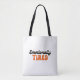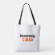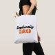 A bold and illustrative design featuring the phrase "Emotionally Tired." The word "Emotionally" is in a groovy, script-like black font with a white outline, while "TIRED" is in a large, chunky, orange bubble/psychedelic font. This design has a fun, retro, 70s vibe, contrasting the heavy sentiment with a playful aesthetic. Perfect for apparel, stickers, mugs, or print-on-demand products for anyone feeling overwhelmed or expressing a state of mental exhaustion in a stylish way.