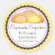 © 2021 Socialite Designs Inc. Diese elegante Empanada Bäckerei Box Siegel / Aufkleber haben ein elegantes Konditorei-Design in einem Spitzen- / Jakobskreis. Das Design hat auch einen lebendigen gelben Streifen Hintergrund. Ein wunderschönes Design, das als Siegel auf Bäckereikisten verwendet werden kann.