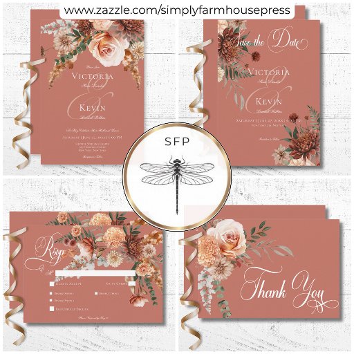 Boho Peach & Rust Floral Rust WeddingDesignt von Kathe Santillo