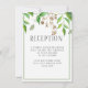 Handgemalte Aquarellbilder sind aus gezapftem Blattblätterblättern und Grünpflanzen mit gesägten Eukalyptus-Blätter. Empfang-Einladungen werden in der Regel für feierliche Empfänge am Abend verwendet, die an einem anderen Ort abgehalten werden. Sie können die Rahmen-, Schriftart- und Hintergrundfarbe mithilfe der bereitgestellten einfachen Werkzeuge anpassen. In sanftem Weissgrün gezeigt.