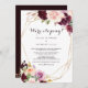 Diese goldgeometrische bordeauxrote, blumengeschmückte Empfang-Karte eignet sich perfekt für ein rustikales Party nach der Entstehung. Das Design ist elegant grün, rot, lila, rot und bordeauxrot, handgezeichnet Blume Bouquets, vergoldete geometrische Rahmen, inspirierend Klasse und Schönheit.