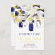 Empfang-Karte mit blauen und gelben Blumenkästen Einladung