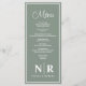Die Sage Green und White Wedding Monogram Empfang oder Verlobung Dinner Menus, wo zeitlose Eleganz auf moderne Eleganz trifft. Diese Menüs eignen sich ideal für Hochzeiten, Proben- oder Verlobungsfeiern und ergänzen Ihre Feierlichkeiten mit einer Touch von Klasse. Die Speisekarten sind in einer ruhigen, grünen Umgebung mit klaren weißen Akzenten gestaltet und vereinen Einfachheit und Eleganz mühelos. Ihr personalisiertes Hochzeitsmonogramm wird hervorgehoben angezeigt und fügt eine maßgeschneiderte Touch hinzu, die Ihre einzigartige Stil- und Liebe-Geschichte widerspiegelt. Unsere vielseitigen Speisekarten sorgen für ein angenehmes Abendessen, ob es sich um ein gemütliches Probe-Dinner, eine schicke Verlobungsfeier oder einen großen Hochzeitsempfang handelt. Jedes Menü ist sorgfältig so gestaltet, dass es Ihre kulinarischen Köstlichkeiten so präsentiert, dass es die Sinne erfreut und das Ambiente Ihres Events rundum ergänzt. Unsere Speisekarte "Sage Green" und "White Menus" ist nicht nur schön, sondern auch funktionell und bietet Ihnen eine elegante Platzkarte, die Ihre Gäste zu ihren Sitzplätzen führt, während Sie Ihre gedankenvoll kuratierten Abendessen präsentieren. Das minimalistische Design sorgt dafür, dass diese Menüs sich nahtlos in jedes Dekor einfügen und somit für eine perfekte Wahl für Paare, die den Luxus schätzen. Feiern Sie Ihre besonderen Momente mit dem raffinierten Charme unserer Sage Green und White Wedding Monogram Empfang oder Verlobung Dinner Menus. Machen Sie Ihre Veranstaltung unvergesslich mit Menüs, die Ihren Geschmack und Eleganz ausdrücken und so ein unvergessliches kulinarisches Erlebnis für Sie und Ihre Gäste schaffen.