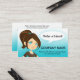 Eine Visitenkarte mit einem Cartoon, der Ihr Unternehmen empfiehlt. Ideal für alle Geschäfte mit überwiegend weiblichen Kunden.