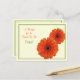 Der Text auf dieser orangefarbenen gerbera daisy-Rezeptkarte für die Braut ist vollständig anpassbar. Sie können es mit der Option Personalize ändern. Wenn Sie die Postkarte umfassender ändern möchten, z. B. die Hintergrundfarbe, den Schriftart, die Farbe des Schriftartes oder das Layout des Schriftartes ändern möchten, wählen Sie die Option Anpassen. Diese Rezeptkarte kann in der entsprechenden Brautduscheinladung eingeschlossen werden, damit die Brautpartys ihre Lieblingsrezepte ausfüllen und die Karte mit ihnen als Hochzeitsnahrung für die Braut zum Duschen bringen können. Sie können dies auch in einer Geburtstagsfeiereinladung nutzen, indem Sie den Text sowohl auf der Einladung als auch auf dieser Karte ändern. Die entsprechende Einladung ist unten aufgeführt.