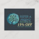 Elegante schwarze und Aquamarine Wasserfarben Tree YOGA Meditation Instructor Referral Karte Ernennung Visitenkarte Vorlagen.