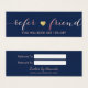 Navy Blue Rose Gold Script Simple Gold Heart Referral Card.