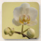 Empfindliche weiße Orchidee auf einem gelben Hintergrund.
