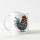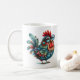 Dieses Huhn oder Hahn im Volkskunststil bewacht Ihre morgendliche Tasse Kaffee. Oder eine Tasse Tee am Nachmittag. Oder eine Tasse heiße Schokolade am Feuer im Abend. "Empfohlen. Nicht. Touch." Der Text kann geändert werden. AI unterstützte Grafik, die mit kommerziellem Einsatz erworben wurde. Kunstwerk: RedHeronLighthouse