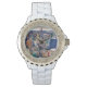 Weiße Damen Email Strassuhr