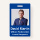Customize your employee's Photo ID badges. All details can be modified or removed. Photo, name, company, department/division. Crisp white text on St Tropaz blue background. Every detail can be customized, including colors and fonts. Spot for barcode on reverse of badge, if needed. If not, can be deleted.