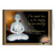 Meditation der Buddha-Statue mit Kristallbezug (eine Skulptur, die ich aus Ton erschaffen habe) mit einer Lotus-Blume und dem Zitat "Der Geist muss leer sein, um deutlich zu sehen" von Krishnamurti