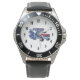 Herrenuhr aus Edelstahl mit schwarzem Lederarmband