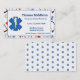 Kontaktkarte für Medizintechnik und andere medizinische Rettungskräfte. Die Karte hat ein blaues Symbol emt ,ems auf einem medizinischen Hintergrund. Benutzen Sie unsere einfache Vorlage, um Ihre Wünsche anzupassen.