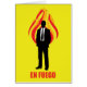 En Fuego. Ein minimalistisches Vektordesign mit einem Mann in einem schwarzen Business-Anzug umgeben von Flammen. Interpretieren Sie die Behauptung, wie Sie gewollt. Ein gutes Geschenk für die Fans von Absurdismus, Vektorkunst Minimalismus und Geschäftsleute in Brand.