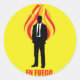 En Fuego Aufkleber. Ein minimalistisches Vektordesign mit einem Mann in einem schwarzen Anzug, umgeben von Flammen. Interpretieren Sie die Allegorie, wie Sie gewollt haben. Ein gutes Geschenk für die Fans von Absurdismus, Vektorkunst Minimalismus und Geschäftsleute in Brand.