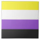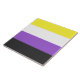 Dieses Design enthält die nichtbinäre Stolperflagge, die Personen repräsentiert, die sich als nichtbinär (auch nichtbinär geschrieben) oder genderqueer identifizieren, wobei es sich um ein Spektrum von Geschlechtsidentitäten handelt, die nicht ausschließlich männlich oder weiblich sind, sondern außerhalb des Geschlechterbinärs liegen. Nichtbinäre Identitäten können unter den transgenderen Schirm fallen, da sich viele nichtbinäre Menschen mit einem Geschlecht identifizieren, das sich von ihrer Biologie unterscheidet. Ein informeller Begriff für nicht binär ist "enby", das aus der Abkürzung NB kommt. Nichtbinäre Menschen können sich identifizieren, dass sie zwei oder mehr Geschlechter haben, kein Geschlecht haben, sich zwischen Geschlechtern bewegen, eine schwankende Geschlechtsidentität haben und drittes oder anderes Geschlecht haben.