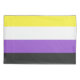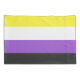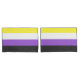 Dieses Design enthält die nichtbinäre Stolperflagge, die Personen repräsentiert, die sich als nichtbinär (auch nichtbinär geschrieben) oder genderqueer identifizieren, wobei es sich um ein Spektrum von Geschlechtsidentitäten handelt, die nicht ausschließlich männlich oder weiblich sind, sondern außerhalb des Geschlechterbinärs liegen. Nichtbinäre Identitäten können unter den transgenderen Schirm fallen, da sich viele nichtbinäre Menschen mit einem Geschlecht identifizieren, das sich von ihrer Biologie unterscheidet. Ein informeller Begriff für nicht binär ist "enby", das aus der Abkürzung NB kommt. Nichtbinäre Menschen können sich identifizieren, dass sie zwei oder mehr Geschlechter haben, kein Geschlecht haben, sich zwischen Geschlechtern bewegen, eine schwankende Geschlechtsidentität haben und drittes oder anderes Geschlecht haben.