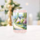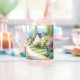 This soft watercolor landscape evokes a tranquil cottagecore dream, where a winding path drifts through flowering meadows toward peaceful countryside homes. Airy brushstrokes and gentle washes create a light, whimsical mood filled with blooming trees, pastel wildflowers, and fresh spring greens. Blush pinks, creamy whites, sky blues, and tender yellows blend seamlessly, giving the scene an enchanting, storybook quality. The composition feels calm and inviting, capturing the romance of slow rural life and the quiet beauty of nature awakening. With its folk-inspired charm and serene atmosphere, the artwork radiates warmth, nostalgia, and a sense of peaceful escape into a blossoming countryside. AI generated artwork.