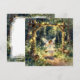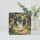 A beautiful fairy tale themed blank notecard. The lovely illustration has a fairy girl swinging on a magical swing in an enchanted garden in the forest. Fairy lights adorn the trees and swing.
