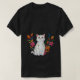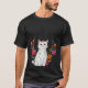 This medium-sized feline gazes directly at you with large, expressive yellow eyes, exuding a calm and friendly demeanor. Its pristine white fur is adorned with a vibrant tapestry of stylized leaves and flowers in bold shades of orange, pink, yellow, green, and blue, creating a decorative pattern that dances across its body.