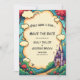 This elegant fairytale-style save the date invitation is perfect for a modern wedding. The retro design features a vintage enchanted forest, a castle illustration, and black calligraphy on a storybook-themed background.