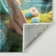 A luminous forest fairy sits gracefully on mossy ground, her flowing turquoise gown and shimmering wings glowing with tiny lights as butterflies dance around her. This magical artwork brings a sense of serenity, wonder, and fantasy to any wall.