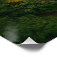 A mystical forest path, woven with a gently babbling stream that cascades over small waterfalls. Towering trees, their leaves glowing in warm golden and green hues from the sunlight, form a natural archway over the water. This serene, fairy-tale-like scene invites you to step into a world of wonder and tranquility.
