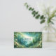 Define your brand with lush beauty and the magical elegance of a forgotten realm using this captivating business card. The design centers on a spectacular vibrant green forest valley, where layers of rolling hills surround a winding river. In the distant background, a fairy tale castle or palace sits atop a cliff. The sky is an ethereal mix of teal and bright light with subtle stars and magical sparkles, enhancing the sense of wonder. The entire foreground is lavishly framed by abundant yellow roses and dark leafy vines that glow with ambient light, creating a vibrant, romantic border. This artwork blends rich, magical realism with opulent, sophisticated florals, making your card truly unforgettable. This business card is ideally suited for a high-end event stylist specializing in fairytale or garden-themed celebrations, a boutique hotelier wanting to convey a magical, serene setting, or a fine art photographer showcasing lush natural scenes. It would also perfectly suit a fantasy novelist or game developer seeking distinctive, narrative-driven branding, or a luxury floral designer emphasizing vibrant, abundant arrangements. The card's captivating combination of enchanted scenery and abundant yellow florals ensures it is versatile for any sophisticated announcement, a refined gift enclosure, or an elegant invitation.